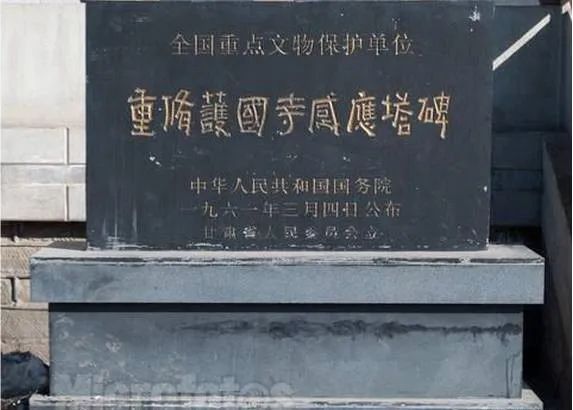 西夏碑,本名《涼州重修護(hù)國(guó)寺感通塔碑銘》,碑高26米,寬1米,厚03米。碑首呈半圓形,兩面正中用漢文和西夏文篆額,邊陰刻對(duì)稱的伎樂舞女,翩翩起舞,動(dòng)作優(yōu)美,造型準(zhǔn)確;舞女胸和手腕上有飾物,赤露上身、雙腳,下著長(zhǎng)裙,面形肌肉豐滿,吸收了敦煌飛天的藝術(shù)特點(diǎn)。碑身的兩邊呈殺角,邊上刻忍冬紋。碑一面為西夏文,共28行,滿行65字。西夏文是一種被人們遺忘了的語言文字,無法辨認(rèn),當(dāng)時(shí)被稱為“天書”。但碑的陽面為漢文,共26行,滿行76字。張澍先生見碑陽文末尾有“天祐民安五年歲次甲戌十五日戊建”落款,“天祐民安”為西夏年號(hào),遂判定此碑為西夏碑文,因此,人們以后稱之為西夏碑。1961年就被國(guó)務(wù)院公布列為全國(guó)第一批重點(diǎn)文物保護(hù)單位。