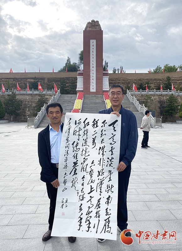 當(dāng)天,甘肅省延安精神研究會(huì)還向?qū)⑴_(tái)堡紅軍會(huì)師長征會(huì)師紀(jì)念園贈(zèng)送了毛體書法作品。