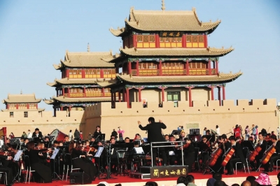 近日,大型交響樂《長城》于中秋、國慶“雙節(jié)”黃金周在國家5A級景區(qū)嘉峪關(guān)關(guān)城激情上演,雄渾的交響曲不僅使得古老絲路精神再次煥發(fā)勃勃生機,更用動人的旋律再一次解讀了“一帶一路”倡議和國家向西開放戰(zhàn)略給甘肅帶來的重大機遇,闡釋了“交響絲路、如意甘肅”豐富而嶄新的意蘊。