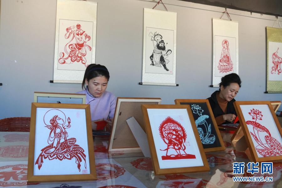 在甘肅敦煌小鎮(zhèn)鳴沙書院,學(xué)員在“敦煌剪紙”酒泉市級非物質(zhì)文化遺產(chǎn)代表性傳承人莊生娟的工作室內(nèi)剪紙(2020年12月31日攝)。新華社發(fā)(張曉亮 攝)