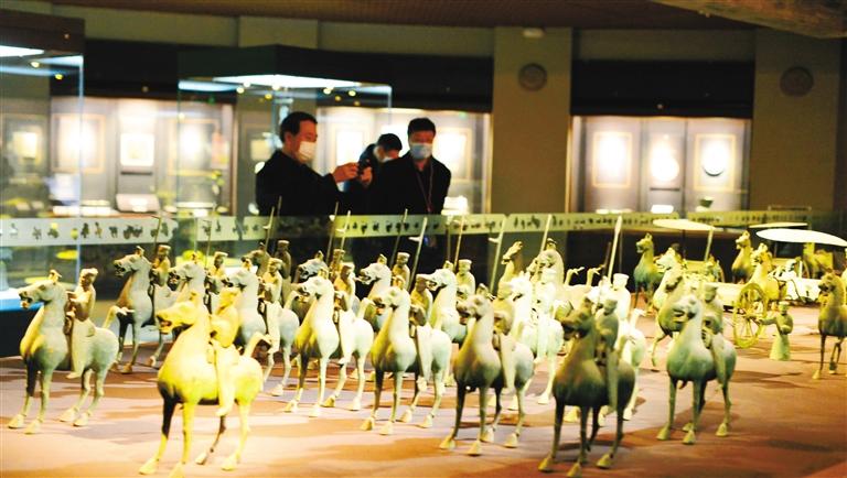 這是觀眾在甘肅省博物館銅奔馬等展區(qū)參觀。 奔流新聞·蘭州晨報(bào)記者 裴強(qiáng) 攝
