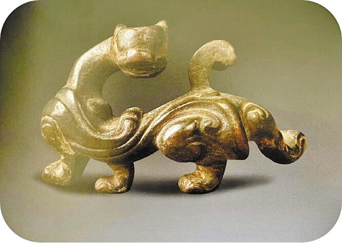 這件文物最吸引目光的便是回望的神情和充滿力量且?guī)е┱{(diào)皮的后肢。