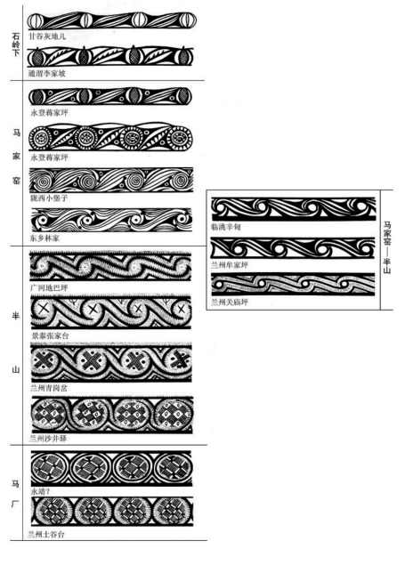 在20世紀(jì)五六十年代,在甘肅及鄰近的青海東部地區(qū)新發(fā)現(xiàn)大量的馬家窯文化遺址,同時(shí)也進(jìn)行了一些發(fā)掘工作,為探索馬家窯文化及彩陶的來源進(jìn)行了深入研究。關(guān)于馬家窯文化與仰韶文化的關(guān)系,體現(xiàn)在彩陶上的線索非常明確,石興邦先生就此進(jìn)行了探討,他在1962年發(fā)表的一文中認(rèn)為馬家窯文化彩陶受到廟底溝類型彩陶的影響,紋飾母題與演變規(guī)律都有相似之處。嚴(yán)文明先生1978年發(fā)表的《甘肅彩陶的源流》,論及半坡類型向隴東和廟底溝類型向隴西及青海東部的擴(kuò)展,認(rèn)為馬家窯文化彩陶的源起與中原地區(qū)的仰韶文化有關(guān)。