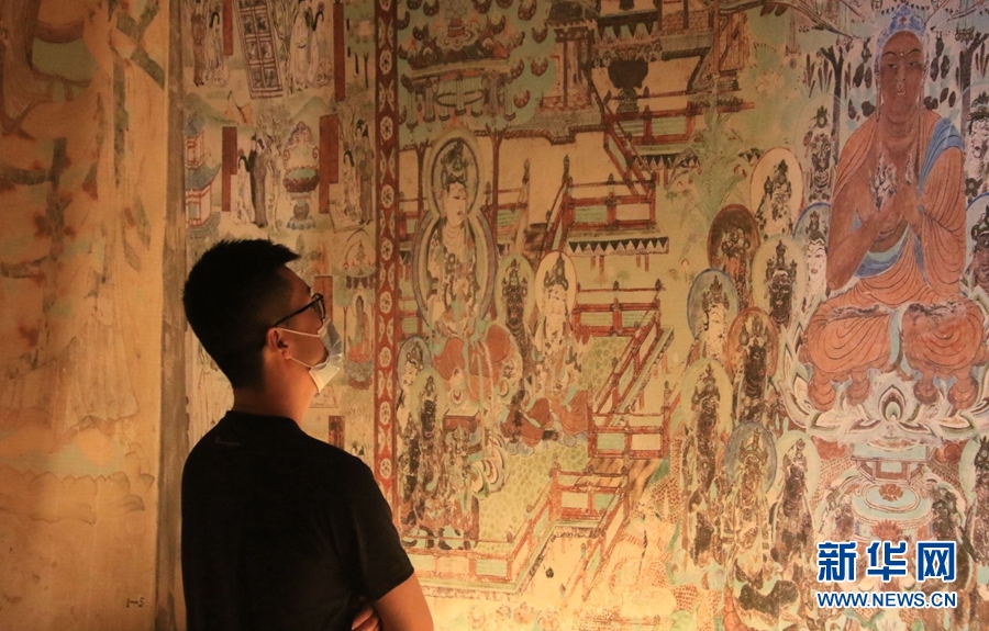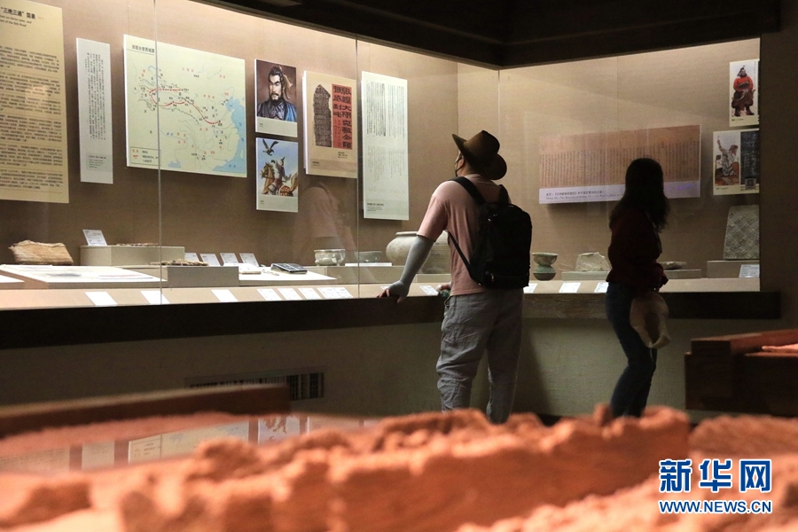 5月15日,游客在甘肅省敦煌市博物館參觀文物展。新華網(wǎng)發(fā)(張曉亮 攝)