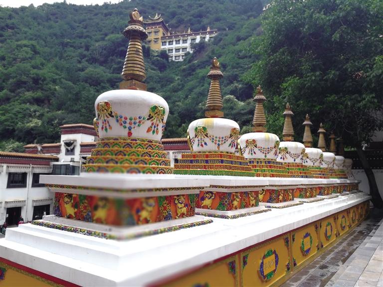 蘭州石佛溝靈巖禪寺坐落在石佛溝腹地,位于蘭州市區(qū)南16公里處的石佛溝國(guó)家森林公園內(nèi),是藏傳佛教格魯派(黃教)寺院。石佛溝寺廟發(fā)現(xiàn)于清初,山崖上發(fā)現(xiàn)了—個(gè)石洞,洞壁上有石佛像。嘉慶(公元1796年—1820年)時(shí),有僧人化緣募捐,修建石佛寺,并長(zhǎng)年住持,石佛溝也因此而得名。北魏太武帝拓跋燾神麚四年(公元431年),鮮卑族首領(lǐng)、吐谷渾白蘭王慕容貴以己隱修之石佛溝靈巖洞為基,拓展建成寺院,因洞內(nèi)有石刻佛像,遂取名“石佛寺”。該寺在清后兩度被毀,2008年重建。寺內(nèi)建有八座白塔,壯觀雄渾。