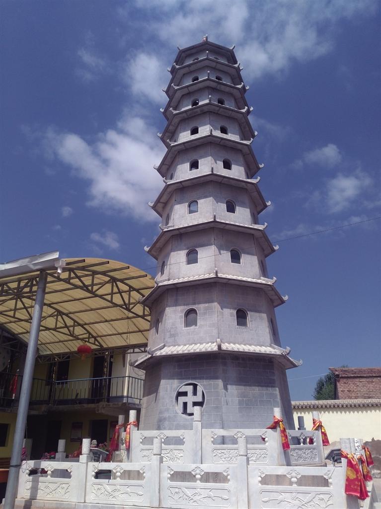 麻家寺雖歷經(jīng)戰(zhàn)火,也經(jīng)多次維修,最終保留了下來(lái),地名也被傳承了下來(lái)。且該地歷史上因此一直是一處絲綢之路古鎮(zhèn),又處于交通要道,故地名遠(yuǎn)揚(yáng)。寺內(nèi),2019年新建有九層八角佛塔一座。是水泥磚混制,千年古寺顯得更加雄渾壯嚴(yán)。