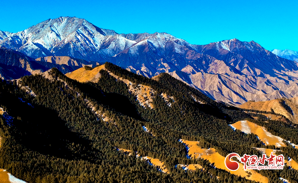 1月21日,雪后的祁連山國家公園甘肅省張掖段肅南片區(qū),遠處的巍峨祁連山脈被皚皚白雪層層包裹,蒼松翠柏,浴雪草原,一派山舞銀蛇的壯美北國風光。