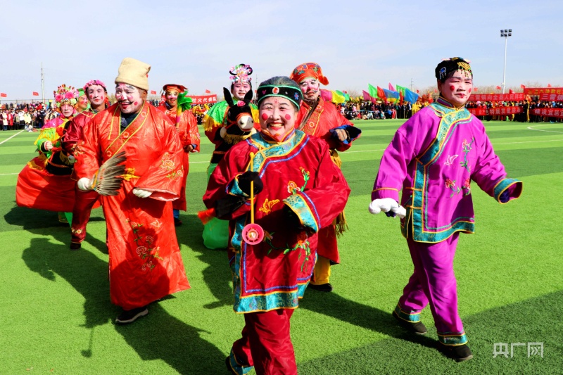 元宵佳節(jié),甘肅民勤年俗活動(dòng)迎來(lái)“狂歡”,一場(chǎng)熱熱鬧鬧的社火秧歌匯演在民勤縣東湖體育公園拉開(kāi)帷幕。