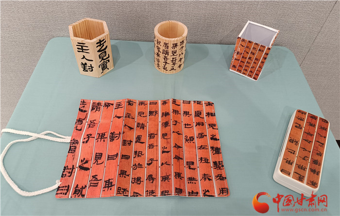 而在西北師范大學美術學院,簡牘則以文創(chuàng)的形式呈現(xiàn)美感,豐富著人們的生活。近日,由西北師范大學聯(lián)合甘肅簡牘博物館舉辦的“簡述中國 牘懂絲路”展覽正在展出,包含簡牘書法、文創(chuàng)成果兩部分。