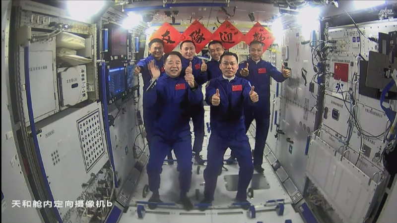 ?。?)三期并列:神舟17號與神舟16號兩個(gè)乘組會合,實(shí)現(xiàn)了我國三批航天員在空間站的首次大團(tuán)圓。
