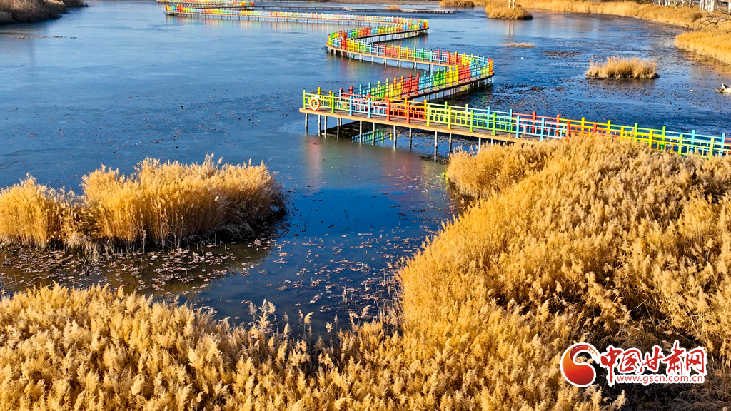 初冬時(shí)節(jié),張掖黑河濕地國(guó)家級(jí)自然保護(hù)區(qū)的蘆葦、蒲草等植物在秋風(fēng)、冬霜的吹拂下都變成了金黃色,密密的蘆花舞動(dòng)著裊娜的身姿,倩影婆娑,蘆葦叢里鳥鳴啾啾,整個(gè)濕地成為了一片金色的童話世界,讓人產(chǎn)生無限遐思。