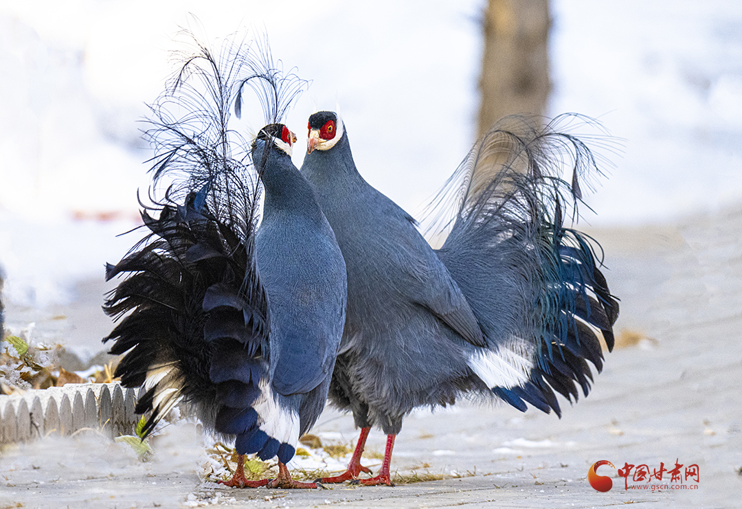 近日,祁連山國家公園甘肅省管理局張掖分局工作人員拍攝到國家二級保護(hù)野生動物藍(lán)馬雞覓食嬉戲場景。