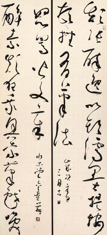 走出去,站在全國的高度,集中進(jìn)行學(xué)習(xí)和交流,對一個立志進(jìn)取的書法家,可以說是一個脫胎換骨的修煉,中國書法發(fā)展的當(dāng)代狀態(tài),成為進(jìn)取的最大參照,風(fēng)格極力貼近時代風(fēng)尚,在此基礎(chǔ)之上加入個人的鮮活語素,在作品中即表現(xiàn)出了時尚,又有自己的構(gòu)想,才有自己的一席之地。侯金喜抓住時代脈搏,積極捕捉在展覽中尚處于不顯眼的元素,不斷加以顯化,使個人的作品在龐大的展出體系中獨(dú)具風(fēng)采,難度可想而知,在高手如林的態(tài)勢下,侯金喜知難而上、刻苦磨煉,向經(jīng)典取法,向當(dāng)代名家問路,雙向融合、求新求變,經(jīng)過了這樣一個長的時段的求索,他的草書在全國眾多的草書家中拔地而起,引發(fā)了廣泛的關(guān)注。看他的草書,變化的度把握在了一個比較妥帖的度上,他不以奇異詭變?yōu)槌缟?,筆畫塑造大體以傳統(tǒng)語言為宗,使柔和與剛健統(tǒng)馭在一起,這種立意基本圍繞中國書法流變的中軸線,可以受到時間的考驗(yàn),在一些筆畫中注入的時代信息,經(jīng)過個人的藝術(shù)提煉,具有了新的生氣。在結(jié)構(gòu)選擇上,他同樣進(jìn)行了深思熟慮,反復(fù)篩汰了過度追求時髦的招數(shù),一直強(qiáng)調(diào)深層次的內(nèi)涵,把一個結(jié)體放在歷史的縱向上反復(fù)琢磨,他自己認(rèn)為,形象造型只有沿著時序的推進(jìn),才能有機(jī)地融入歷史,成為藝術(shù)的終極選擇,所以侯金喜的探索是審慎的,邁進(jìn)是疊復(fù)的,我們欣賞他的作品,可以看出他思考的勤謹(jǐn),每一個階段都有不同的表達(dá),欣賞者隨著他的筆觸的流瀉,可以領(lǐng)略到豐富的視覺享受。