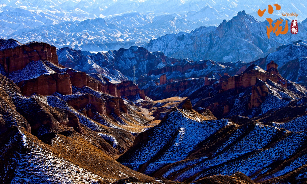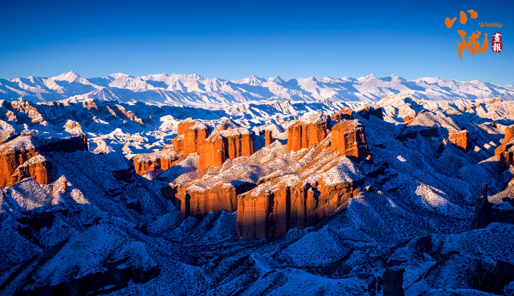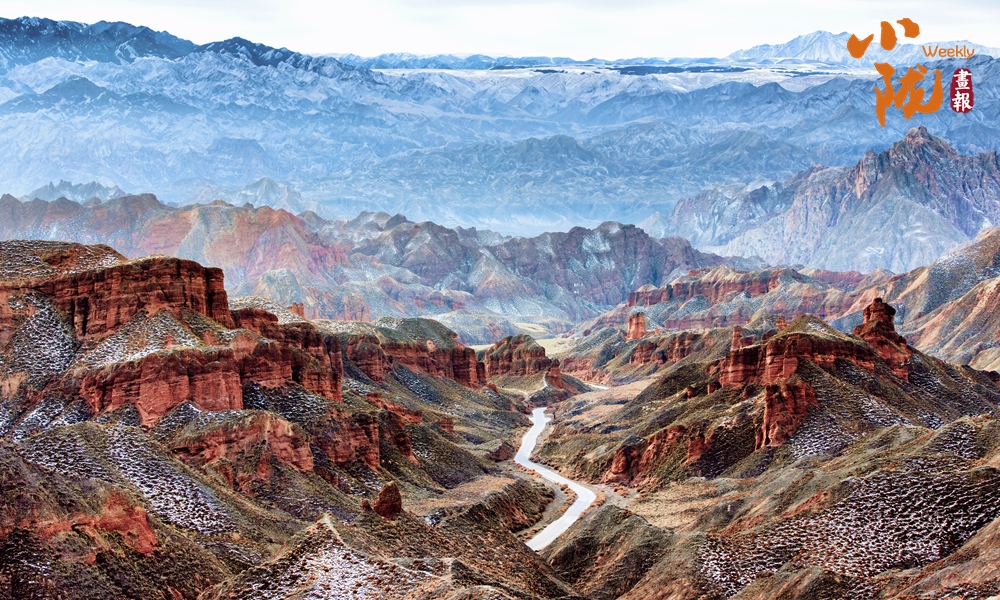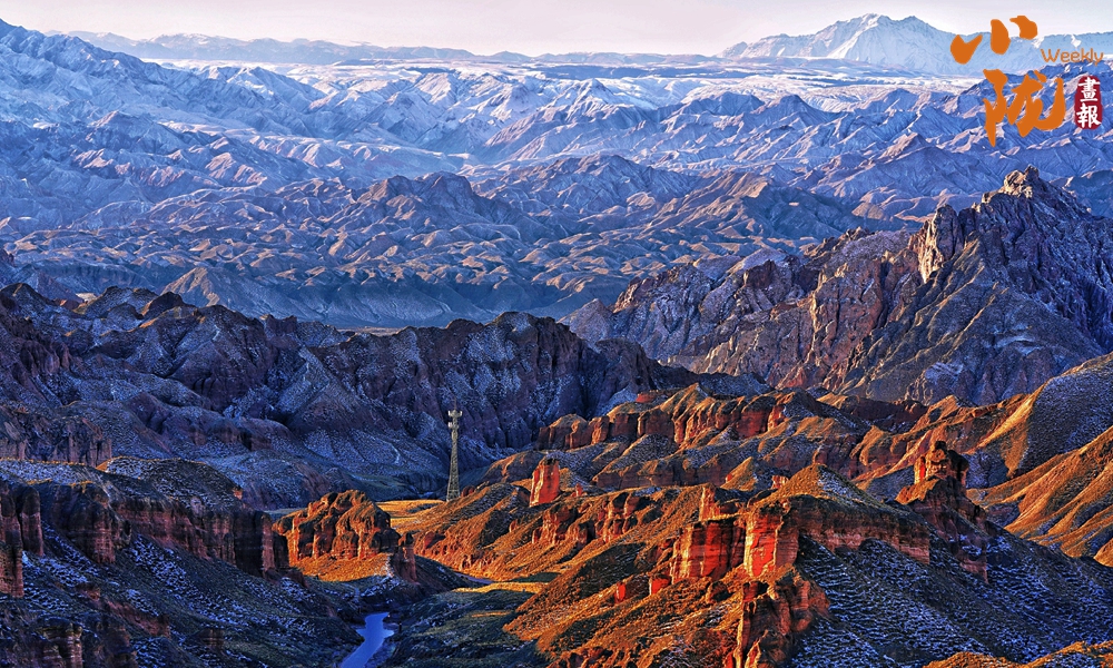 到了這里,色彩是讓人無法忘懷的記憶。大西北湛藍(lán)的晴空下,被白色覆蓋的紅色山體,變幻出多彩的顏色,氣勢磅礴。