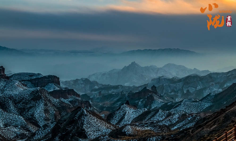 白雪輕輕地覆蓋在時隱時現(xiàn)的斑斕地貌上,丹霞上空云霧繚繞,置身其中仿佛走進(jìn)了夢幻般的世界。