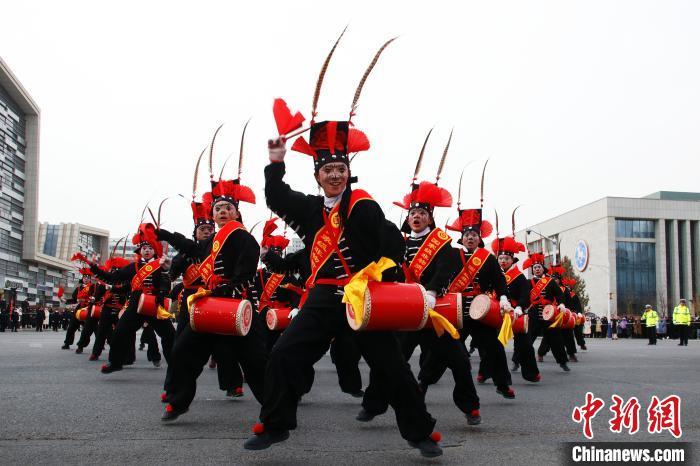 2024年春節(jié),武威市涼州攻鼓子表演。(資料圖)  王潤 攝