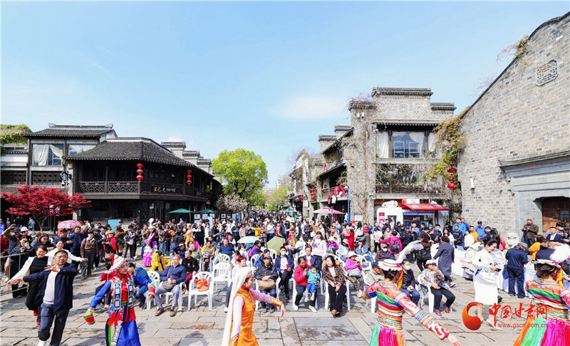 “快閃+路演”主題宣傳由甘肅民族風(fēng)舞蹈串燒的快閃活動拉開序幕,西北特色民族舞蹈與江南風(fēng)情老街相遇,記憶里的南方與北方相融,這樣一幅情景相依又充滿矛盾的特殊“舞臺畫卷”,迅速吸引了景區(qū)大批游客駐足觀賞。