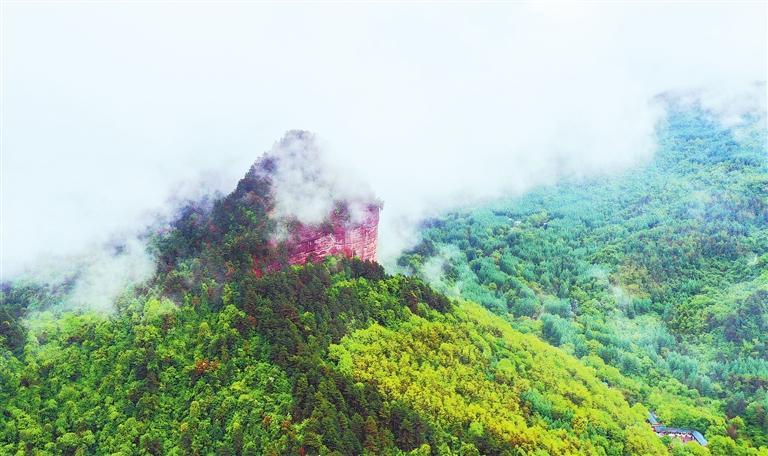 在綿綿細(xì)雨中,麥積奇峰時(shí)隱時(shí)現(xiàn),吸引游客慕名而來(lái)感受“麥積煙雨”的魅力。新甘肅·甘肅日?qǐng)?bào)記者 田 蹊