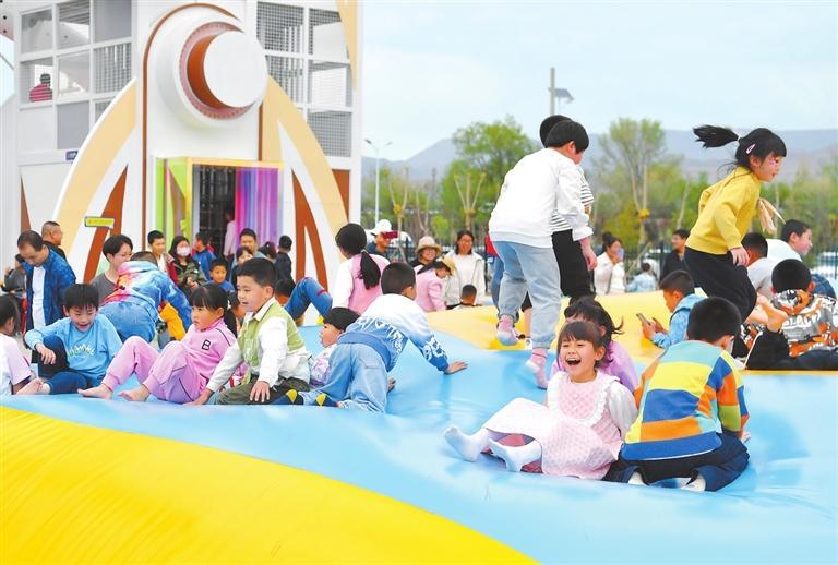 孩子們?cè)阡尤缫鉃秤H子樂園功能區(qū)快樂玩耍。新甘肅·甘肅日?qǐng)?bào)記者 馬伊星