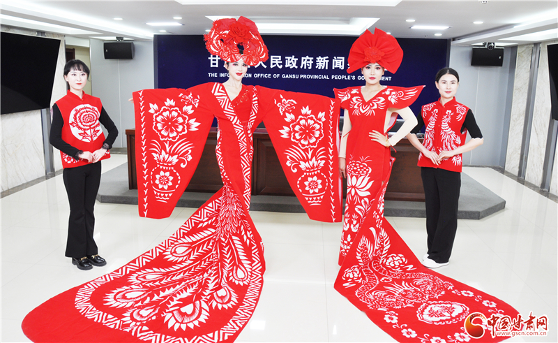 發(fā)布會上,還同步舉行了香包、刺繡展覽,剪紙展演及剪紙時裝秀。