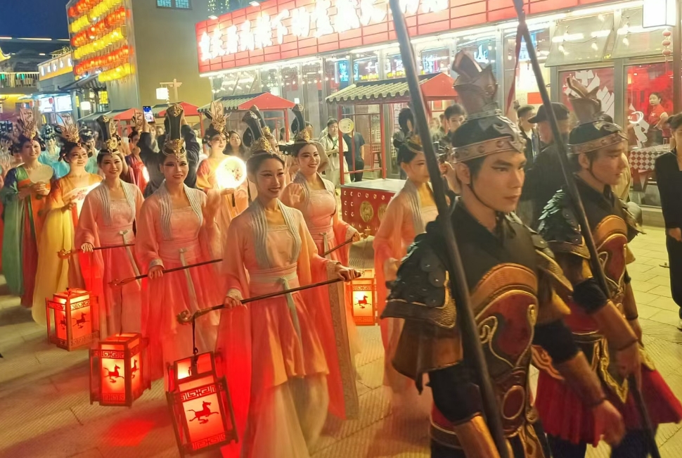 在漢唐天馬城西涼大劇院,大型沉浸式情景舞臺劇《天馬行》,用美輪美奐的舞美場面再現(xiàn)漢文化歷史,講述涼州的千年風(fēng)華,帶領(lǐng)觀眾進(jìn)行一次古今穿越之旅。