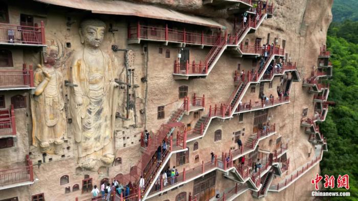 位于甘肅省天水市的麥積山石窟,處于中國石窟走廊的十字路口,溝通東西、連亙南北,既是中國各民族交往交流交融的藝術再現(xiàn),也成為東西方文明交流互鑒的重要標志。2014年,麥積山石窟作為“絲綢之路:長安—天山廊道的路網(wǎng)”的組成部分,被聯(lián)合國教科文組織公布為世界文化遺產(chǎn)。