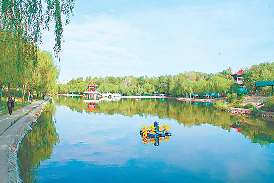 南湖公園又名南湖生態(tài)植物園,位于縣城南,是山丹實(shí)驗(yàn)推廣花卉樹種新品種的林業(yè)示范園。新建人工湖、游泳池、釣魚池各1處,建成富有特色的焉支閣、湖心亭、曲拱橋、蘭池文物園、仙堤樓、轉(zhuǎn)輪亭、法塔、昭文堂等人文景點(diǎn)。