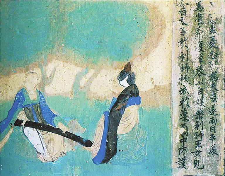 在莫高窟第321窟壁畫中有一幅“青年男女圖”:畫面中一對戀人穿著“情侶衫”,女子的上衣與男子的長袍是同樣的淡綠色。他們兩人身材高挑、情意綿綿,女子右手前指,含情脈脈望向男子,男子喜不自禁,右手緊握著女子長長的左邊衣袖。在莫高窟第85窟壁畫中有一幅“樹下彈琴圖”:畫面描摹的是波羅奈國太子善友與作惡多端的弟弟惡友的故事。善友被弟弟設計陷害,雙目失明,悲憤不已的他只能在樹下彈琴來排遣不幸,美麗的利師跋國公主被他的琴聲吸引感動,不顧一切與他結為夫妻。后來在公主的幫助下,善友太子奪回了屬于自己的一切。畫面里的善友與公主二人神色寧靜,祥和雋永。在榆林窟第38窟壁畫中有一幅“同入青廬圖”:畫面上一對男女衣著華美,男子一襲赭紅長衫,喜氣洋洋;女子著套色衣裙,衣袂飄飄,緊緊依偎在愛人身邊,正可謂“金風玉露一相逢,便勝卻人間無數(shù)”。