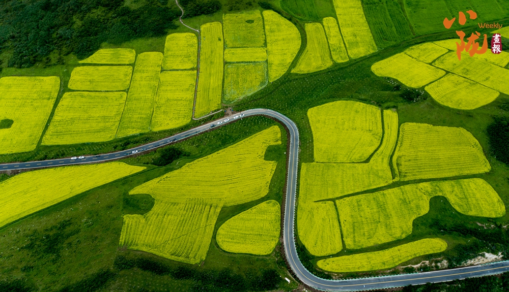油菜花海遍布周?chē)纳狡?,古哈公路穿境而過(guò),駕車(chē)行駛在這條路上,古村、田野、山水不斷,欣賞著山村美景,一路盤(pán)旋,最是怡人自得。