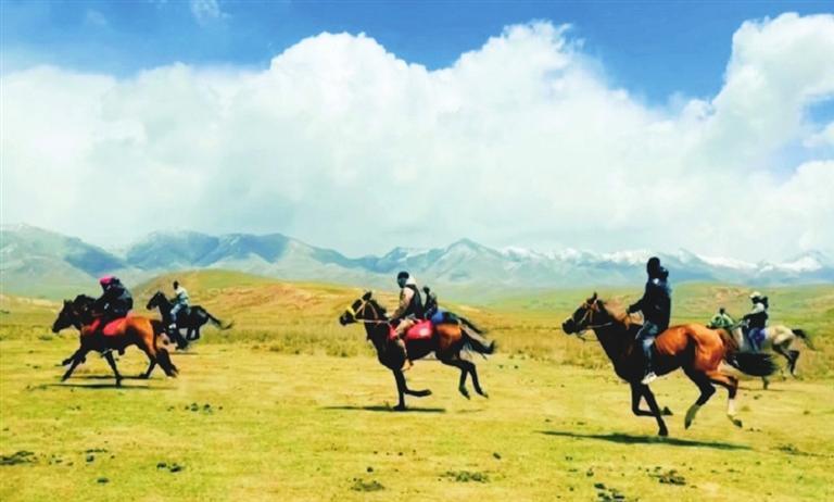 每年六月,在甘肅省張掖市肅南裕固族自治縣的夏日塔拉草原,都會例行舉辦賽馬會:裕固族同胞們約親邀友,身著禮服、腰系彩綾,或騎馬或乘摩托車或步行,從四面八方向會場涌來,可謂一路環(huán)佩錚響,馬嘶長鳴,粉紅黛綠,絡(luò)繹于道。把夏日塔拉湖邊的賽馬主會場變成了歡樂的海洋。