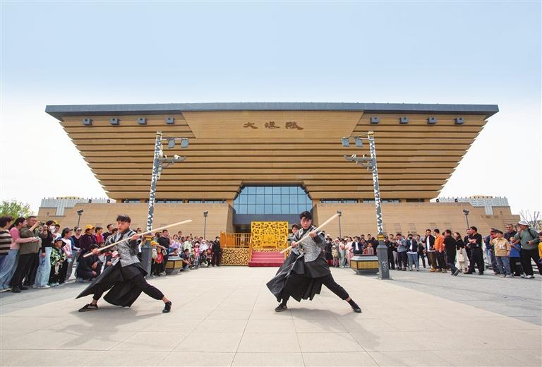 近期,“漢宴”也收獲了大量的關(guān)注。這個(gè)河西首家漢文化沉浸式體驗(yàn)餐項(xiàng)目,融漢文化展示、歌舞演藝、場(chǎng)景體驗(yàn)、美食品味于一體,打造餐飲消費(fèi)新場(chǎng)景,讓游客身臨其境感受文化魅力。