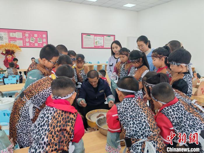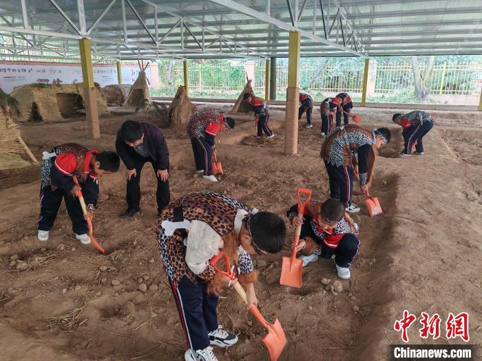 10月16日,大地灣博物館開展“史前工坊”特色主題社教活動,吸引大批孩子參與體驗。 (秦安縣委宣傳部供圖)