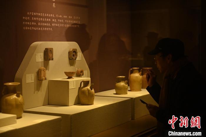 10月27日,在甘肅省蘭州市甘肅省博物館,游人參觀“唐風(fēng)妙彩 —— 長(zhǎng)沙窯瓷器精品展”。10月底,甘肅省博物館攜手長(zhǎng)沙博物館聯(lián)合推出的“唐風(fēng)妙彩 —— 長(zhǎng)沙窯瓷器精品展”在甘肅省博物館開(kāi)展。長(zhǎng)沙窯瓷器以其豐富多樣的裝飾手法而聞名,它將繪畫(huà)、書(shū)法等藝術(shù)形式用于瓷器裝飾,開(kāi)創(chuàng)了中國(guó)古代瓷器裝飾的新風(fēng)尚。中新社記者 李亞龍 攝