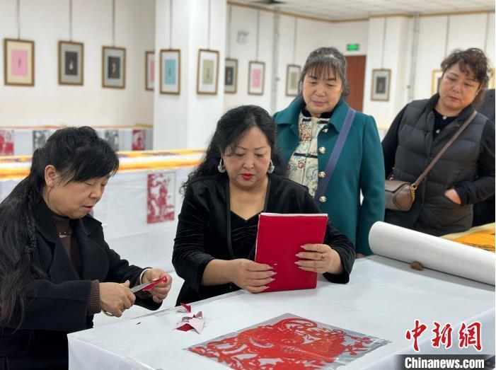 11月19日,蘭州市七里河區(qū)舉行“譜寫(xiě)時(shí)代非遺曲 同唱隴上剪紙情”——七里河區(qū)新時(shí)代文明實(shí)踐主題活動(dòng)暨“蘭州剪紙”非遺傳承人李自新、李麟桐剪紙藝術(shù)展。楊娜 攝