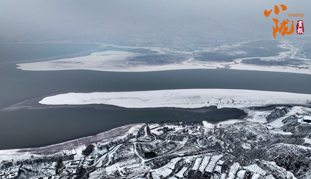 黃河水在峽谷中緩緩流淌,原本色彩斑斕的連綿群山,被皚皚白雪溫柔覆蓋,更顯層次,呈現(xiàn)出一幅壯美的山河畫卷。