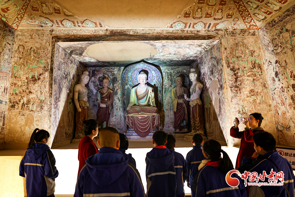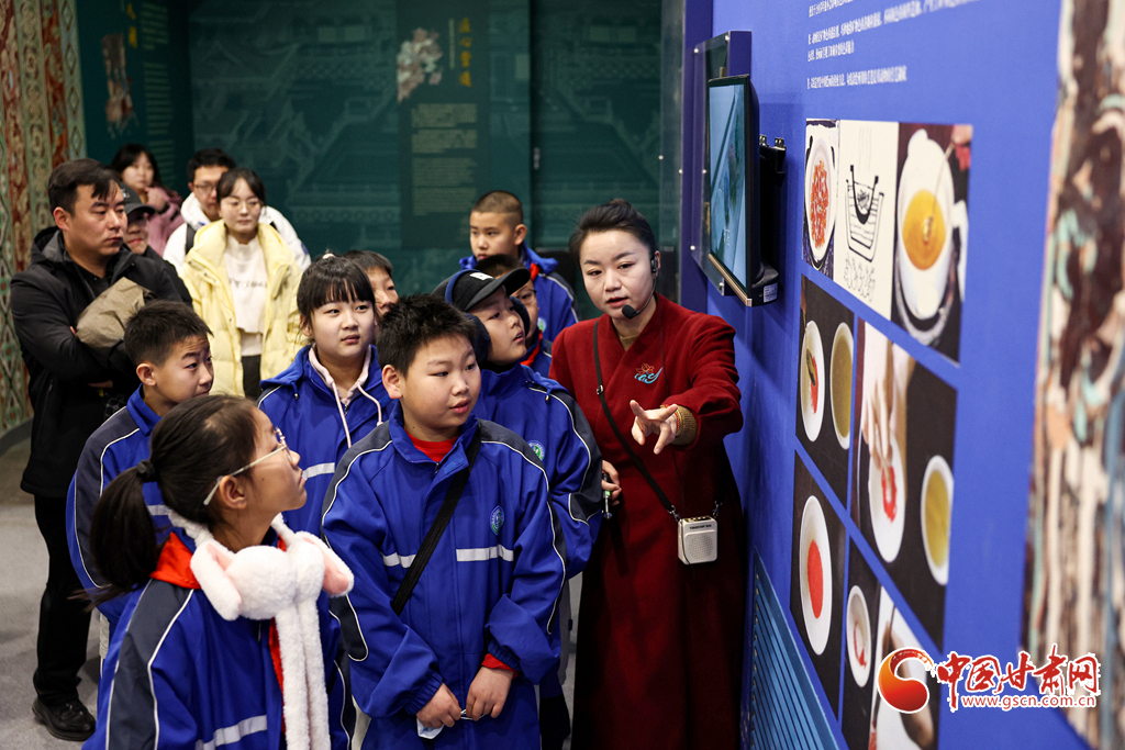 12月29日,蘭州市城關(guān)區(qū)安樂村小學(xué)學(xué)生在家人的陪同下來到敦煌研究院蘭州分院敦煌藝術(shù)館,欣賞“覺色敦煌 莫高精神”敦煌石窟藝術(shù)展,在周末時(shí)光近距離感受敦煌文化藝術(shù)的魅力。
