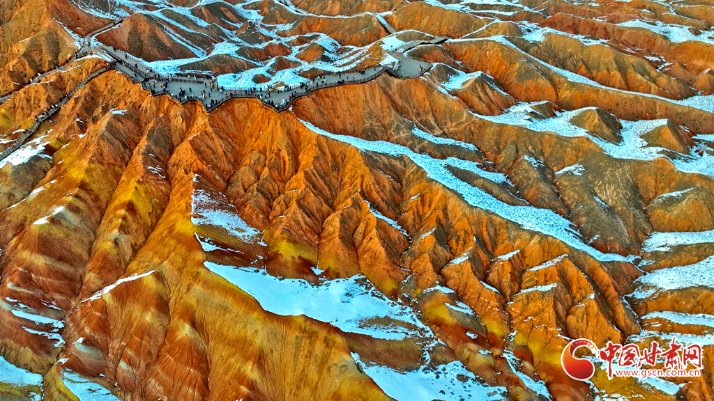 春節(jié)假期,張掖市七彩丹霞景區(qū)內人頭攢動,全國各地游客慕名而來,欣賞宛如夢幻仙境般的雪浴丹霞地貌景觀,在領略大西北壯美景色中歡歡喜喜過大年。