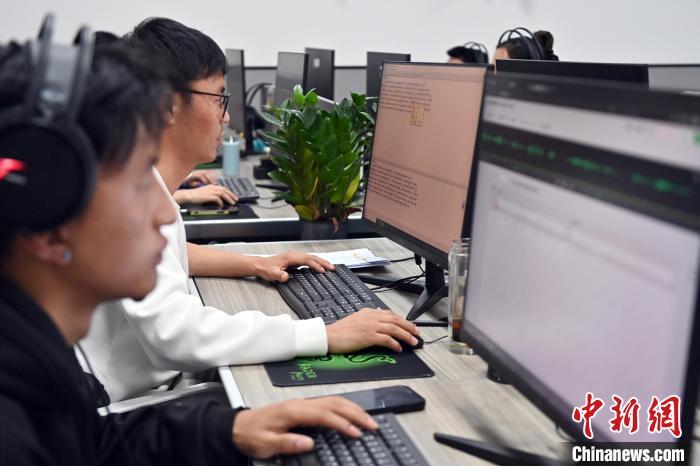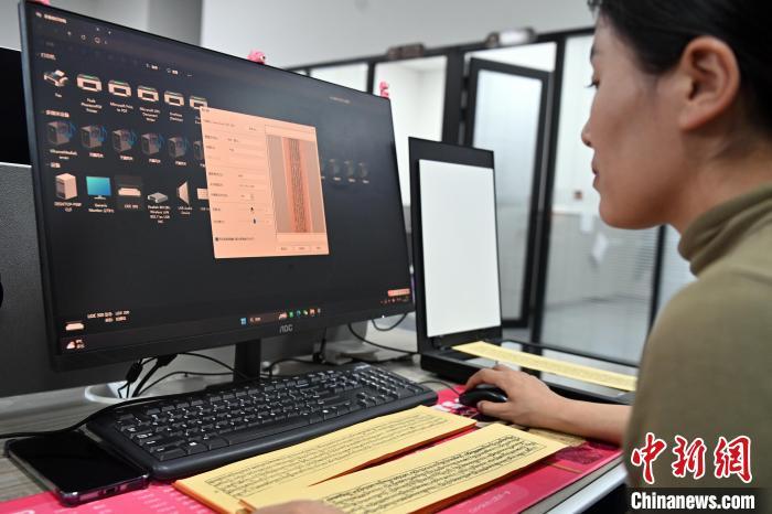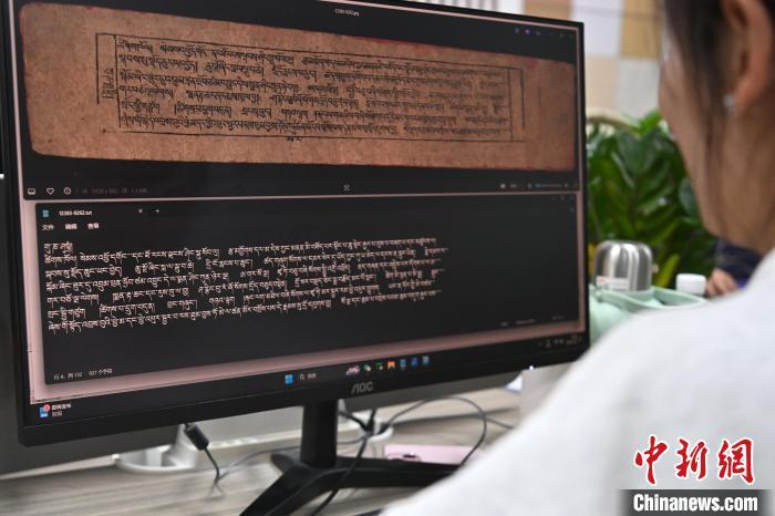 2月27日,在甘肅甘南藏族自治州碌曲縣益西達吉科技有限公司內(nèi),工作人員正在進行藏文古籍數(shù)字化相關(guān)工作。該公司主要從事民族古籍數(shù)字化建設(shè)和古籍文獻數(shù)據(jù)庫建設(shè),自2019年以來,承擔西藏、四川、甘肅等省區(qū)的藏文古籍數(shù)字化項目。圖為工作人員用該公司研發(fā)的藏文信息處理系統(tǒng)對古籍數(shù)字化內(nèi)容進行檢查。中新社記者 九美旦增 攝