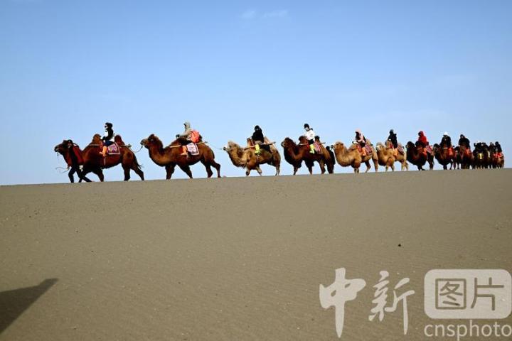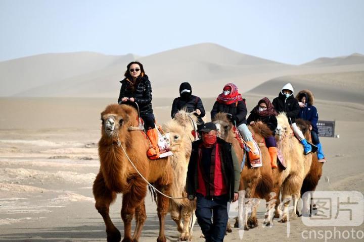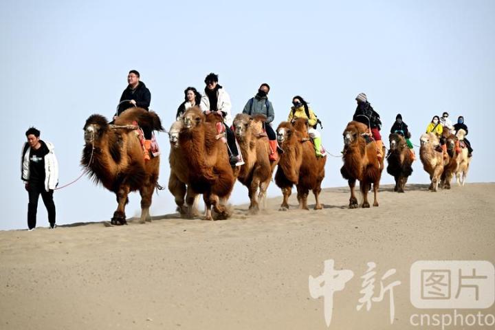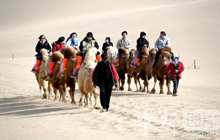 2025年3月2日,游客在甘肅省敦煌市鳴沙山月牙泉景區(qū)游覽。從3月1日開始,至3月31日,甘肅省敦煌市鳴沙山月牙泉景區(qū)、世界文化遺產(chǎn)玉門關(guān)遺址、敦煌雅丹世界地質(zhì)公園三大市屬景區(qū)推出門票半價優(yōu)惠政策,吸引游客走進(jìn)敦煌,欣賞大漠風(fēng)光,體驗(yàn)絲路風(fēng)情。中新社發(fā) 張曉亮 攝