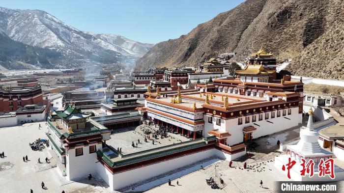 2月28日,航拍“世界藏學(xué)府”拉卜楞寺。(無人機(jī)照片)九美旦增 攝