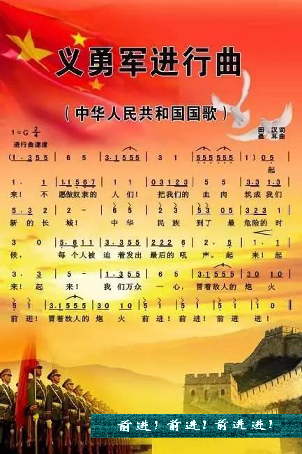?、嗲斑M!前進!前進進?。骸读x勇軍進行曲》這一段歌詞是作曲家聶耳改定的。為了使歌曲曲調(diào)和節(jié)奏更加有力,聶耳把田漢原來的“我們?nèi)f眾一心,冒著敵人的飛機大炮前進。前進!前進!前進!”改為“我們?nèi)f眾一心,冒著敵人的炮火,前進!冒著敵人的炮火,前進!前進!前進進!”全國政協(xié)委員、國家一級指揮、解放軍軍樂團前團長于海曾談到:“前進,前進,前進進!”這七個字堪稱國歌的點睛之筆。“前進進”的節(jié)奏感,凸顯了國歌精神的進行時態(tài)。正是這種精神一直在指引我們,激勵著我們。