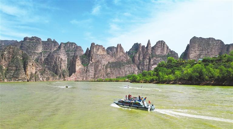 游客在劉家峽水庫(kù)乘船游覽。新甘肅·甘肅日?qǐng)?bào)通訊員 史有東