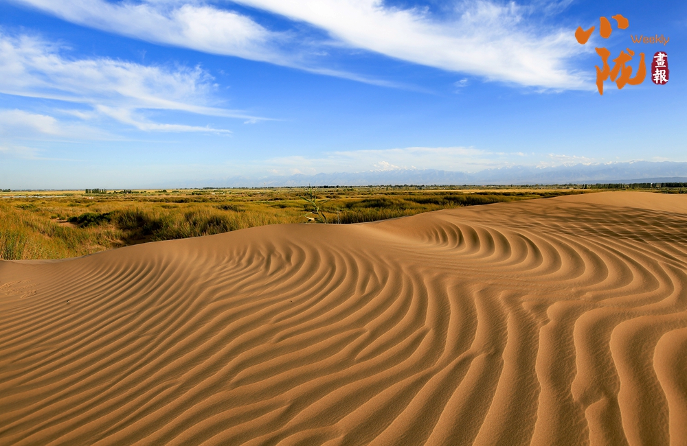 站在綠洲與大漠的結(jié)合處,觀賞四方風(fēng)景,眼前奇異的景致讓人驚嘆萬(wàn)分:一邊是莽莽蒼蒼、雄渾博大、無(wú)邊無(wú)際的大漠海洋,一邊是郁郁蔥蔥、娟秀嫵媚的綠洲碧野。這是大自然杰出的造化,這黃色與綠色之間沒(méi)有任何過(guò)渡,兩色卻形成鮮明的對(duì)比,宛如畫家手下的色盤,黃綠分明、對(duì)比強(qiáng)烈而又和諧統(tǒng)一,令人叫絕?!?/p>