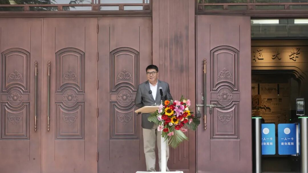 開幕式最后,徐兆壽致答謝詞。他說,做這次展覽的初衷,是因為在這個數(shù)字、AI和音視頻的傳播時代,書寫可以體悟中國文化的心法。他自三十六歲起開始與孔子、老子、鳩摩羅什等圣賢結(jié)緣,五十歲以后又遇見了伏羲、大禹,正是如此多的先賢讓他有了弘道的愿望。同時特別感謝樓宇烈、莫言、賈平凹、連輯、李敬澤等眾多文化名家的支持,共同呼吁大學生抄寫經(jīng)典,傳承中華文脈。最后,他呼吁更多的人拿起毛筆或鋼筆,重新書寫,傳承經(jīng)典,弘揚傳統(tǒng)文化。