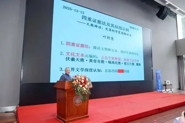葉舒憲強調(diào)教授“四重證據(jù)法”對文明互鑒的推動作用,國際影響持續(xù)擴大。葉教授領銜的“神話學文庫”(第三輯)新書發(fā)布會在12月6日于上海交通大學盛大發(fā)布;“文庫”項目計劃出版71部著作,現(xiàn)已出版66本,余下5本將于2026年出版完成,將構(gòu)建起覆蓋全球25大文明圈的神話研究網(wǎng)絡。這是將“四重證據(jù)法”進行跨文明比較研究的首次探索,揭示不同神話體系共通的“根性邏輯”。
