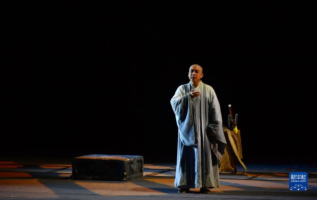 演員在敦煌大劇院表演大型民族器樂(lè)劇《玄奘西行》(9月23日攝)。新華社記者 陳斌 攝