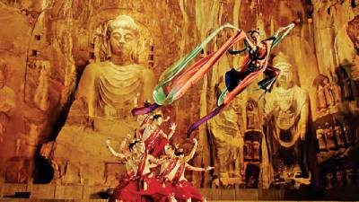 為此,主創(chuàng)人員對龍門石窟中生動多樣的藝術造型進行了全面梳理。“我們請教專家,翻閱、學習大量典籍,深入理解龍門石窟‘伎樂天’形象;同時把握龍門‘金剛’不同于云岡石窟、敦煌壁畫的特點,它更為‘中國化’,更加樸實、有力量。”李鵬說,團隊在此基礎上,進一步進行藝術化處理,編排成舞蹈,做到“每一個造型定格時,體態(tài)在龍門石窟中都有據(jù)可依,可以找到原型”。