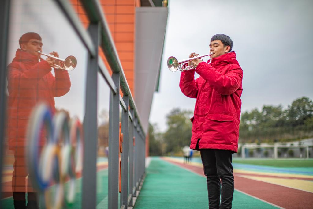改編后的國際殘奧委會會歌,引子是由小號奏出高亢嘹亮的號角。小號手王太樊,吹響了第一聲旋律。他和盲童小伙伴們,用音樂“看見”了世界,也讓世界看到他們。
