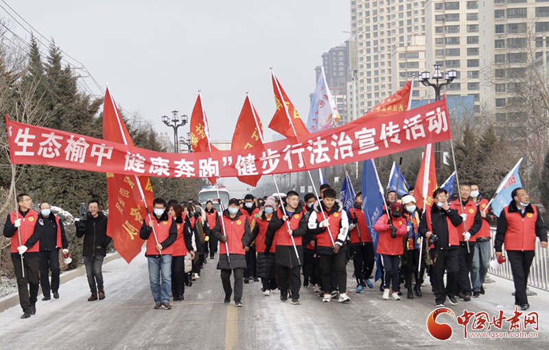 省、市、縣司法行政工作人員、法律服務(wù)工作者、甘肅司法健行者俱樂部隊員等200余人著法制工作服、宣傳標志服,持法治宣傳牌按規(guī)定路線在榆中縣城內(nèi)徒步行走5公里,首次將健步行活動和國家憲法日宣傳相結(jié)合,讓廣大群眾在鍛煉的同時,還可在沿途學(xué)習(xí)憲法及法律知識,進一步提高了普法宣傳的知曉度和覆蓋面。