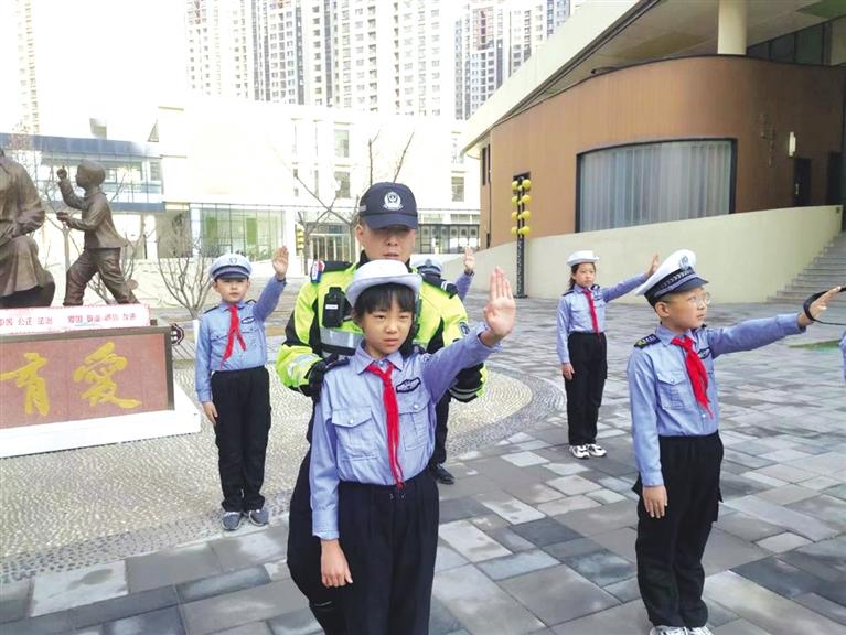 交警課間進(jìn)校園 教孩子們交通手勢操